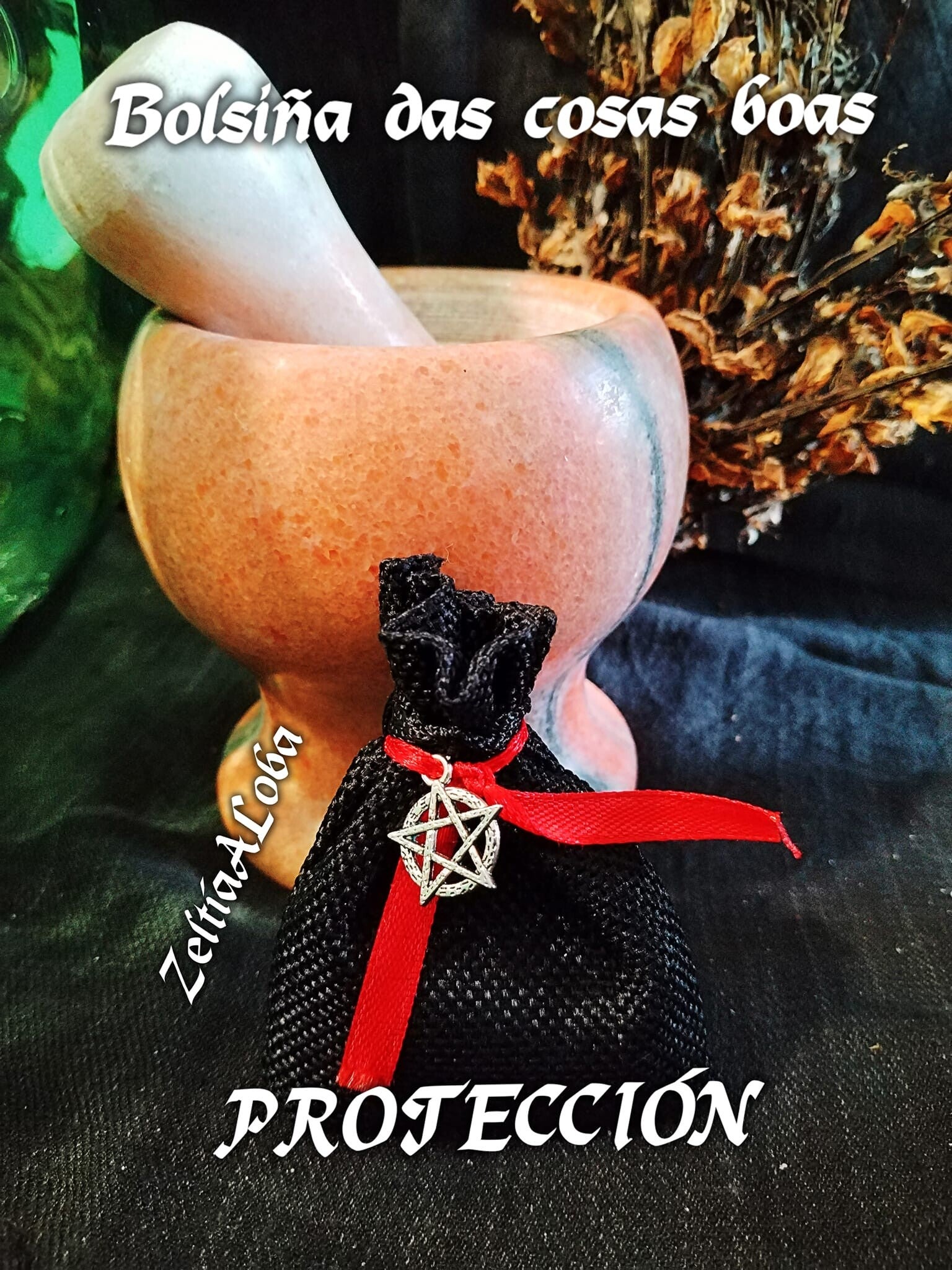 Las "bolsiñas das cousas boas", son amuletos tradicionales gallegos, propios de la Meigaría. Confeccionados con productos totalmente naturales, hierbas, piedras semipreciosas, cenizas, esencias y símbolos mágicos. El ingrediente más importante de estos amuletos, es la magia que le aporta la Meiga a elaborarlo.